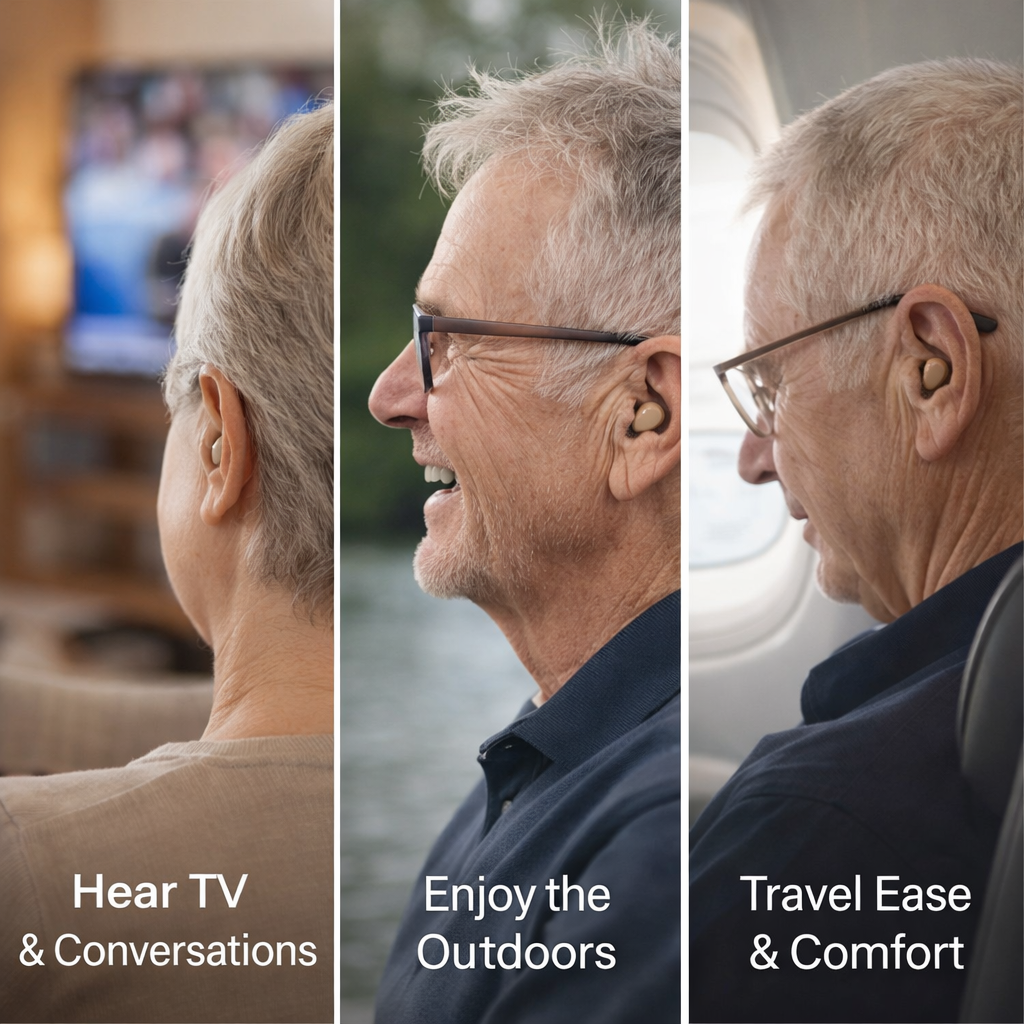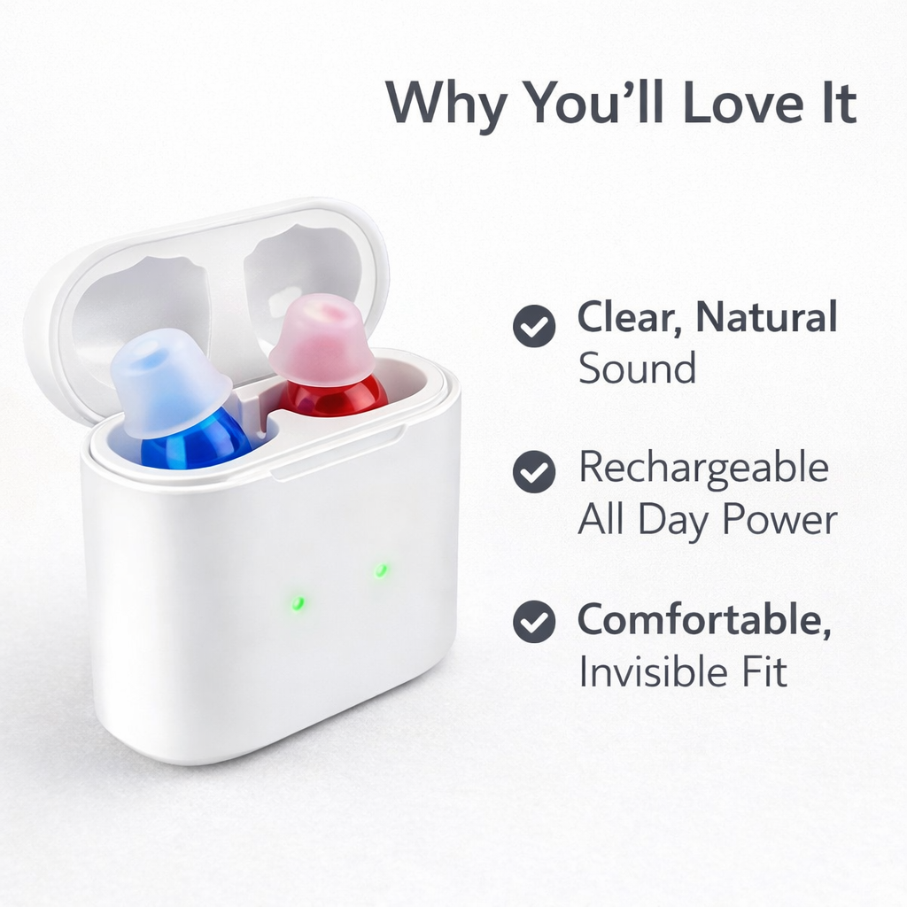 Bulky, uncomfortable hearing aids that ache after an hour? Those days are over. At just 2 grams with ultra-soft silicone domes, Our Invisiaids fit so naturally you'll forget you're wearing them! Move freely, laugh loudly, and never adjust again.